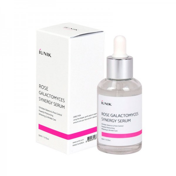Ультра-увлажняющая, питательная, витаминная сыворотка, IUNIK Rose Galactomyces Synergy Serum обеспечивающая комплексное улучшение кожи благодаря розовой воде, питательным дрожжам Galactomyces, никотинамиду и аденозину.
