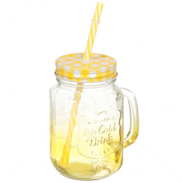 Продаж в Україні: ціни, огляд, характеристики, відгуки, доставка, інтернет магазин | Купити Чашка скляна із трубочкою 450мл жовтий MSN-7367 в Одесі